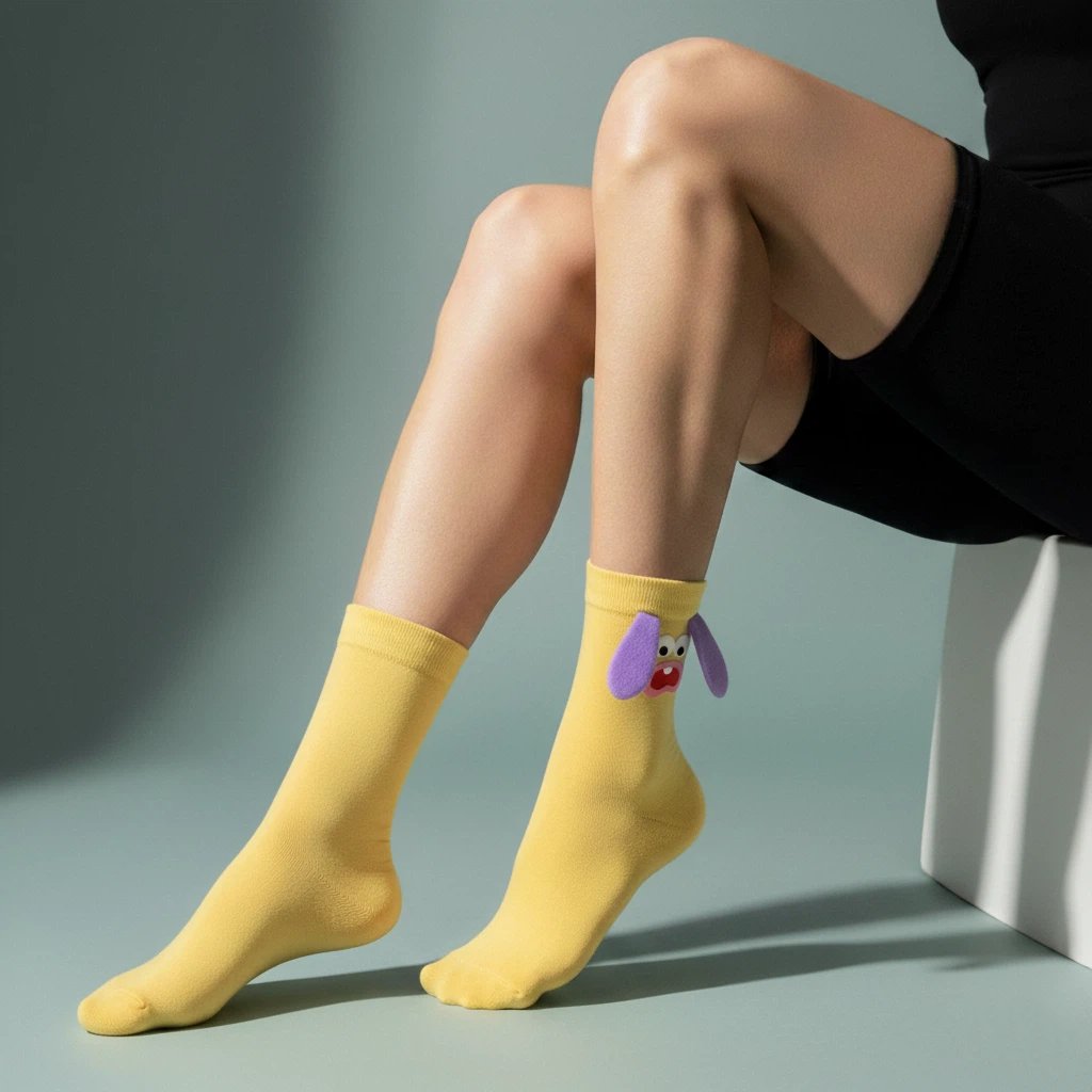 EmotiForce introduces the Yellow Puppy Embroidery Socks, a bright and joyful pair designed to add a spark of fun to daily outfits.